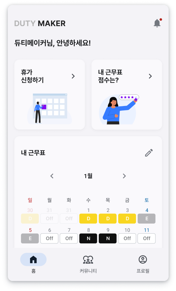 듀티메이커로 근무표 작성 시작해보세요